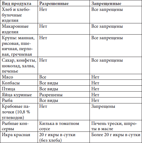Таблица 1. Разрешенные и запрещенные продукты