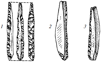 Рис. 2. Граветские артефакты, Чахлэу. Длина образца № 1 – 3 см, остальные в масштабе