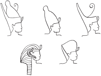 Полное титулование египетского царя было разработано намного позже. В своей окончательной форме оно состояло из пяти титулов и пяти имен; два из имен были окружены овалами (так называемыми картушами), которые использовались только царями и царицами. Полная пятичленная титулатура занимала в надписи массу места, и цари обычно использовали лишь одно или два из своих имен и титулов. При первых двух династиях титул имел всего три элемента; самым популярным было имя Гора, которое писалось не в картуше, а в прямоугольной рамке серех, представлявшей собой упрощенное изображение фасада царского дворца. На крыше дворца сидел Гор, бог-сокол, который отождествлялся с царем, и его фигура читалась как титул: Гор такой-то и такой-то (как царь такой-то и такой-то).
