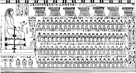 Рис. 5. Перевозка колоссальной статуи. Из гробницы Джхутихотепа. Эль-Берше