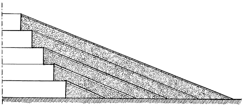 Рис. 6. Разрез насыпи (пандуса), использовавшейся при строительстве пирамиды (по Круну)