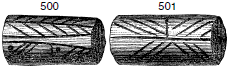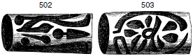 Рис. 500, 501. Терракотовый цилиндр с прочерченным орнаментом из слоя сожженного города. (Половина натуральной величины)