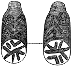 Рис. 492. Печать из терракоты. (Половина натуральной величины. Найдена на глубине 26 футов)