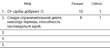 На чистом листе бумаге составьте список мифов, касающихся проблемы лишнего веса, которым вы привыкли верить, и тех утверждений, которые все еще кажутся вам справедливыми. При этом помните: миф – это то, что казалось неоспоримым, но что больше не соответствует действительности, хотите вы этого, или нет.