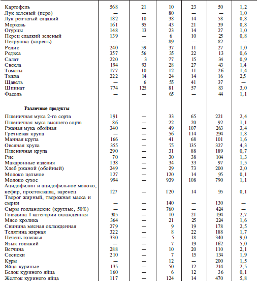 В продуктах содержатся различные минеральные (неорганические) вещества, которые имеют большое значение для нормального развития процессов жизнедеятельности организма. Наиболее важными из них являются железо, йод, кальций, магний, натрий, сера, фосфор, фтор, хлор и некоторые другие.