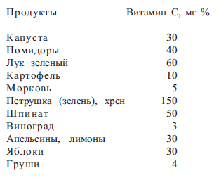 Витамин С (аскорбиновая кислота) играет в организме важную биологическую роль. Он активно участвует в окислительно-восстановительных процессах, влияет на белковый и углеводный обмен, повышает сопротивляемость организма к различным инфекциям и т. д. Недостаток витамина С приводит к быстрой утомляемости, сонливости, апатии. При длительном недостатке, а тем более при отсутствии аскорбиновой кислоты в пище расстройство организма усиливается и может возникнуть тяжелое заболевание – цинга. В сутки взрослый человек должен получать от 50 до 100 мг аскорбиновой кислоты. Особенно богаты витамином С плоды шиповника, зеленые грецкие орехи, черная смородина, красный перец, хрен, укроп и др. Рекомендуемая доза содержится в 80 г киви, 60 г сырого перца или 120 г брокколи. Данные приводятся рядом.