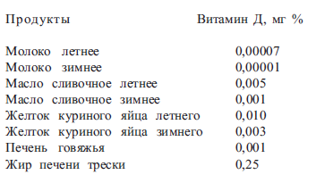 Наибольшее количество витамина D находится в печени палтуса, тунца, трески. Много его в жире сельдей, угрей, сардин и некоторых других рыб. Рекомендуемая доза – 0,005 мг/день. Некоторые данные см. в таблице.