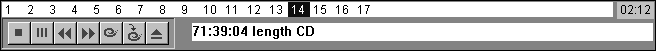 В верхней части данной панели содержатся номера треков компакт-диска. Щелчком левой кнопки мыши по любому номеру можно начать воспроизведение трека с этим номером. В правом верхнем углу содержится поле, в котором отображается текущее время проигрываемого в данный момент трека. В левой нижней части панели содержатся несколько кнопок, которые имеют следующее назначение (слева направо).