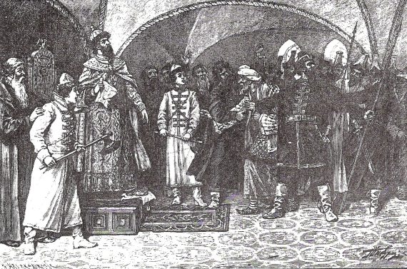 В 1498 году произошло первое венчание наследника московского престола шапкой Мономаха, ставшей символом русского самодержавия. Почти сто лет создавался весь ритуал возведения на царство – возложение венца-короны, бармы, скипетра, державы, облачение в порфиру, произнесение символа исповедания веры и миропомазание. Вскоре высшим законом в стране стала самодержавная власть государя. Теперь благополучие и благосостояние народа зависело от того, кто сидел на московском троне – злодей или гений. В своем завещании Иван III Грозный писал своим последователям: «Волны бьют о камни и ничего камням не делают, а рассыпаются пеной и исчезают нам в посмеяние. Держите мое имя честно и грозно». Механизма контроля за государем в стране создано не было и на Московском троне гения сменил злодей.