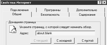 После внесения указанных изменений окно Свойства: Интернет будет выглядеть так, как это показано на рис. 2.52 – вкладка Безопасность в данном окне отображаться не будет.