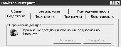 Чтобы сделать недоступными кнопки, которые расположены в области Ограничение доступа, необходимо в разделе реестра HKEY_CURRENT_USER\Software\Policies\ Microsoft\Internet Explorer\Control Panel создать параметр Ratings типа DWORD и присвоить ему значение 1; для этого используется следующий reg–файл: