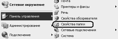 С помощью реестра можно удалить из меню Панель управления данную функцию. Для этого необходимо в разделе HKEY_CURRENT_USER\Software\Microsoft\Windows\ CurrentVersion\Policies\Explorer создать параметр NoFolderOptions типа DWORD и присвоить ему значение 1. Ниже приведен текст соответствующего reg–файла: