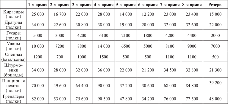 – кирасиры: бронечасти, оснащенные тяжелыми танками прорыва и предназначенные для сокрушения обороны противника;