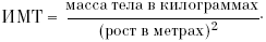 Для определения индекса массы тела (ИМТ) используется показатель Кетле (Quetelet). Он определяет как уровень избыточного, так и недостаточного веса. ИМТ вычисляется по формуле: