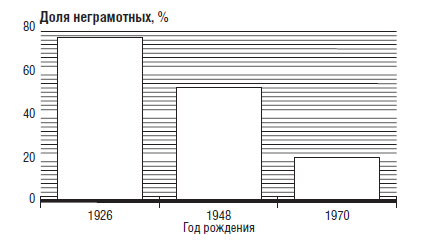 В количественном отношении эта цифра выглядит внушительной, и она действительно велика, но в процентном отношении здесь наблюдается большой прогресс: если в 1950 году 70 % жителей развивающихся стран не умели читать и писать, то сегодня таких осталось 23 %. С 1990 года число неграмотных снизилось на 10 % – почти на 75 миллионов. Гендерные различия в этой области также постоянно сокращаются. О том, насколько быстро распространяется грамотность в сегодняшнем мире, видно из сравнения долей грамотных людей в разных поколениях. Неграмотность среди молодежи быстро сходит на нет.