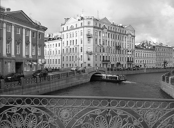 Пройдя через Второй Зимний мост и следуя дальше по набережной Мойки, вы увидите, что у Дворцовой площади, а точнее у бывшей площади Гвардейского штаба, реку пересекает довольно широкий Певческий мост (его ширина составляет более 70 м) с удивительными перилами и их заградительными металлическими решетками в виде изящного, замысловатого кружевного рисунка.