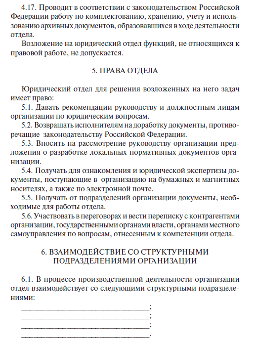 Рекомендации юридической службы в пределах ее функций должны быть приняты к руководству и исполнению всеми структурными подразделениями и должностными лицами организации.