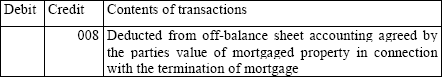 If you have any mortgage agreed by the parties of the contract value of the mortgaged property transferred by the mortgagee or the mortgagor left, is reflected in off-balance account 008, “Guarantees received”[22].