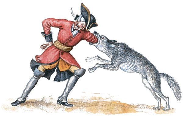 Так, неожиданно однажды бросился на меня в лесу огромный голодный волк. И, разумеется, у меня не оказалось оружия, однако я не растерялся: сунул ему в пасть кулак, да так глубоко, что у волка аж глаза повылазили.