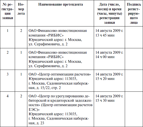 Претендент: Открытое акционерное общество Финансово-инвестиционная компания «РИБИС»,