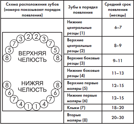 Ребенок рождается без зубов. Молочные зубы прорезываются после рождения в определенной последовательности. Одноименные зубы на каждой половине челюсти прорезываются одновременно. Прорезывание зубов начинается с нижней челюсти, за исключением боковых резцов, здесь верхние зубы появляются раньше нижних.
