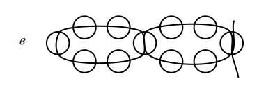 Закрепить ожерелье: на конец нити или лески надеть 1 бисеринку и протянуть ее через крайнюю стеклярусинку начала ожерелья. Затем нанизать еще 1 бисеринку и протянуть нить или леску в крайнюю стеклярусинку предпоследней дужки. В заключение закрепить конец нити (рис. 7а – и).