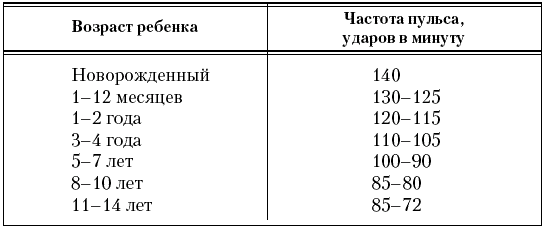Частота пульса у детей (А. Ф. Тур, 1955)