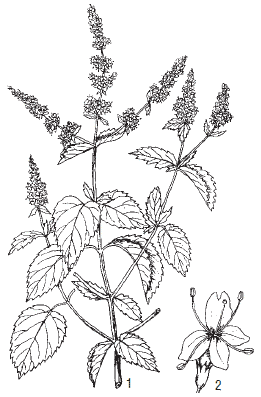 Рис. 32. Мята перечная: 1 – общий вид цветущего растения; 2 – цветок
