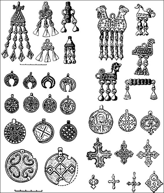 Угро-финские и славянские украшения, найденные при раскопках в Костромской области
