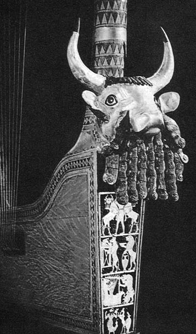 Многие древние художественные изделия – сложные комплексы, каждая часть и деталь которых взаимно дополняют одна другую. В их изготовлении часто принимали участие мастера многих ремесел. Так, в создании знаменитой головы быка из Ура (2685 г. до н. э.), без изображения которой не обходится ни одна работа по культуре шумеров (рис. 1.1) использованы: золото, ляпис-лазурь; она украшает деревянный резонатор музыкального инструмента, инкрустированный перламутром.