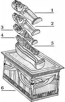 На приведенном рисунке 1.3 видно, каким образом гробы помещались один в другом и все вместе – в ковчеге (огромном ящике с двустворчатой крышкой, обитым листовым золотом). Картеру и его проворным помощникам было чрезвычайно трудно работать с ними в столь ограниченном пространстве. Но мастера Древнего Египта оставили очень важные надписи и отметки там, где гробы соединялись друг с другом. Зачем были сделаны эти отметки, объяснить невозможно, разве только их создатели предусмотрели, что эту колоссальную головоломку когда-нибудь захотят разобрать и собрать вновь.