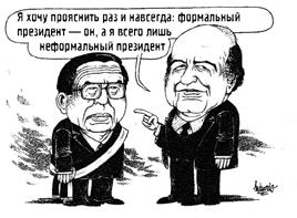 Одна из сотен карикатур, утверждающих, что в реальности страной управляет Де Сото (Карикатура из журнала Caretas)
