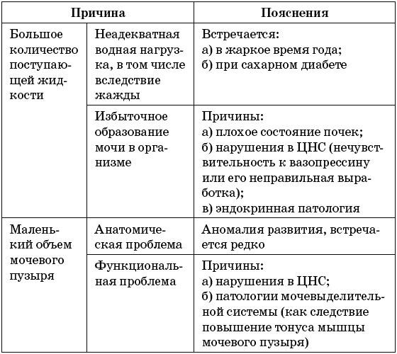 На рис. 2 показаны три основные составляющие ночного недержания мочи. Каждая из них имеет много причин, которые мы разберем ниже, но суть заболевания заключается в сочетании нескольких причин из каждого блока. Два этих блока рассмотрены в табл. 3, 4. О проблеме глубокого сна подробно рассказывается в разделе «Профундосомния» второй части книги.