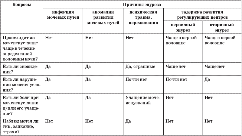 Предлагаю вашему вниманию приведенную ниже табл. 7, с помощью которой вы можете предположить, какова причина энуреза у ребенка.