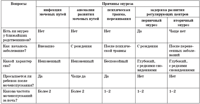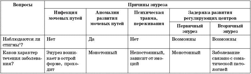 Таблица 7. Определение причины энуреза