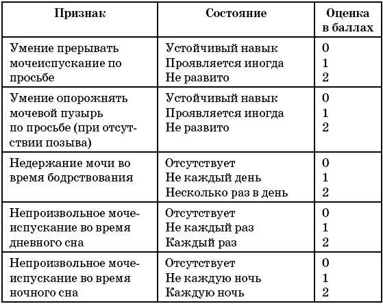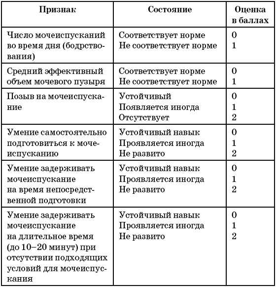 Таблица 6. Оценка степени зрелости функции мочеиспускания