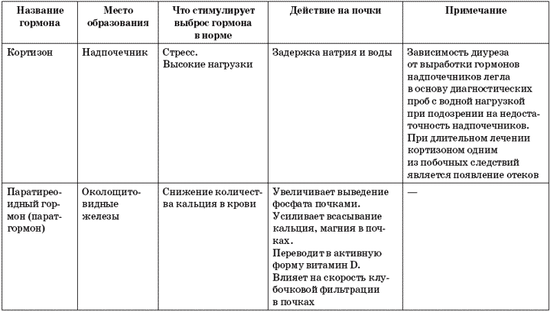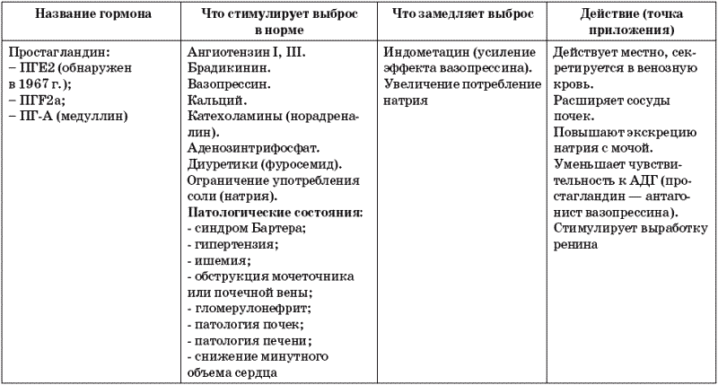 Что и почему заставляет почки «спать» в норме? Все тот же антидиуретический гормон. Но есть ряд гормонов, вырабатываемых самой почкой (см. табл. 10).