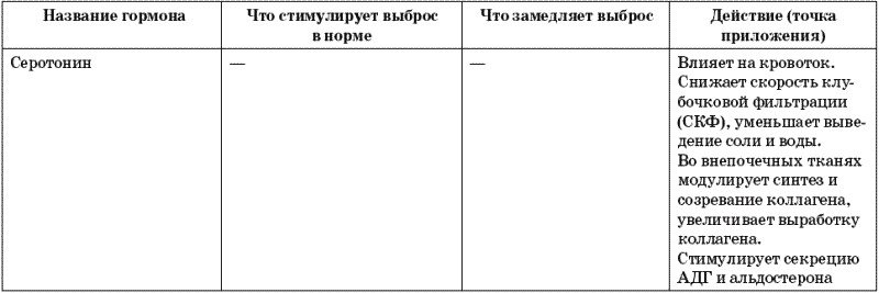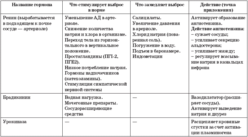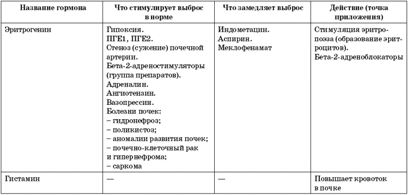 Таблица 10. Гормоны, вырабатываемые почками