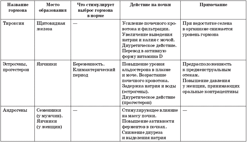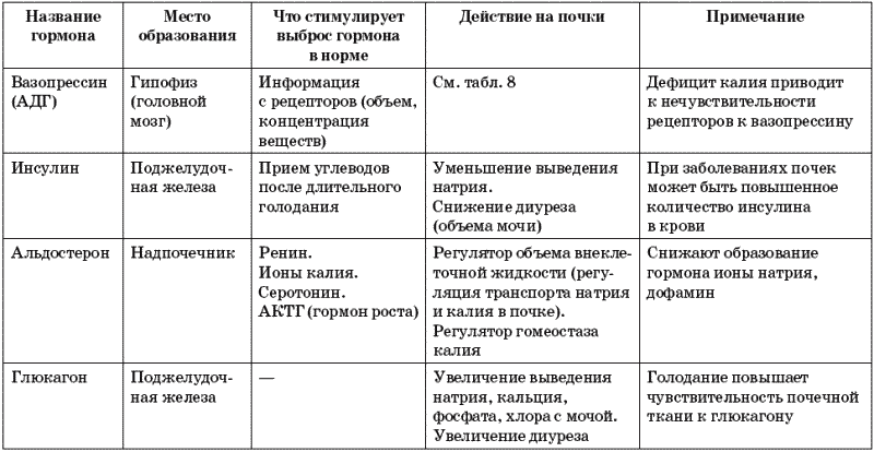 Таблица 9. Гормоны, оказывающие влияние на почки