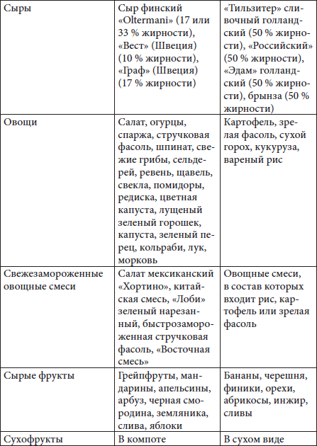Таблица 1. Разрешенные и запрещенные продукты