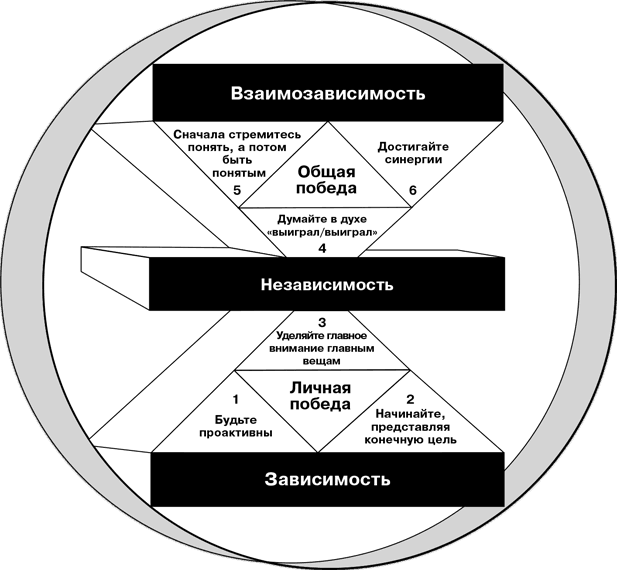 Навыки 1, 2 и 3 помогают из жертвы превратиться в творца, обрести надежду, дисциплинировать себя. Навык 1 использует самосознание и самопознание, навык 2 – совесть и воображение, а навык 3 – силу воли. Эти способности присущи исключительно человеку: животные ими не обладают. По мере продвижения по континууму зрелости ваша жизнь перестает быть постоянным тушением пожаров и преодолением кризисов. Вы сосредотачиваетесь на важных, но необязательно срочных делах и обладаете достаточной силой воли, чтобы осуществить их.