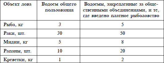на водоемах общего пользования, а также тех, что закреплены за общественными объединениями, – не больше пяти на рыбака;