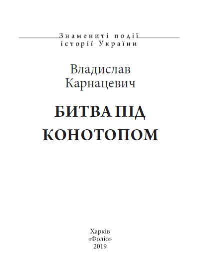 В своїх роботах відвели місце битві під Конотопом відомі історики XIX століття – Соловйов, Костомаров, Маркевич, Рігельман, Лазаревський. Найбільш правдиву картину створив, мабуть, останній з них. Костомаров, як буде відзначено в одній з глав, схоже, занадто довірився літописам. Радянські історики нібито і не знали, що там відбувалося під Конотопом, бо битва ця якось вибивалася із ланцюга подій, пов’язаних із встановленням «віковічних» дружніх стосунків двох братських народів. Якщо ж вона і привертала увагу, то задля того, щоб підкреслити огидність зрадника Московії гетьмана І. Виговського. В 1990-ті роки історики незалежної України, звісно, вже не так оцінювали і гетьмана, і його перемогу. Серед тих, хто займався проблемою, багато серйозних дослідників. Але нам хотілось би назвати в першу чергу роботу В. Борисенко, А. Бульвін-ського і С. Візера «Еволюція українсько-російських відносин у другій половині XVII ст.» і статтю того ж А. Буль-вінського «Конотопська битва 1659 р.». Цей дослідник є зараз, мабуть, найвідомішим фахівцем з цього питання у нашій державі. Його ж основний опонент з російського боку – І. Бабулін, що видав, наприклад, книгу «С. По-жарський і Конотопська битва».