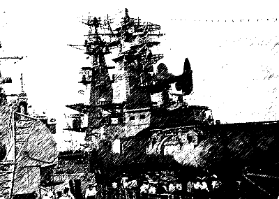 По пути, я крутил по сторонам головой, рассматривая незнакомый мне город Владивосток. По сравнению с Питером он казался довольно небольшим. Каменные и деревянные дома были раскиданы по многочисленным сопкам, окружавшим просторную бухту. Я не сразу заметил, как мы зашли на территорию судоремонтного «Дальзавода», где, как нам объяснил наш сопровождающий, и должен был стоять наш красавец-крейсер. Мы шли вдоль причала, мимо пришвартованных разномастных судов и суденышек. Тут были ледоколы, сухогрузы, рыболовные сейнеры, катера… Ни одно из них даже близко не напоминало тот никелированно-сверкающий образ, который я сотворил в моем воображении. От нетерпения я то и дело вытягивал шею, всматриваясь вдаль. Я старался не пропустить момент, когда передо мной предстанет наконец мой ракетный крейсер!