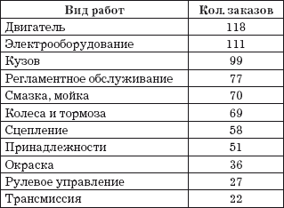 Виды работ группируются в несколько категорий. Количество заказов, приходящихся на каждую категорию, берется из бланков заказов.