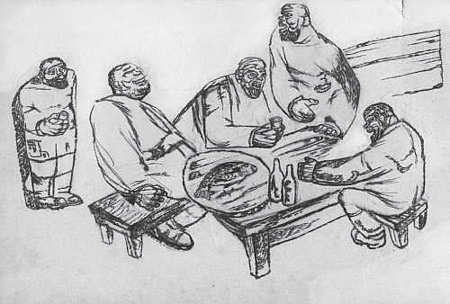 Застолье. Иллюстрация в журнал «Перелом». 1932. Б., тушь. 13x19,2