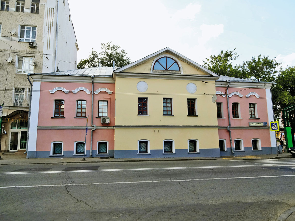 Мы подошли к перекрестку. Обратите внимание! Если по правой стороне движения вы свернете во дворы (между Старой Басманной, 20, и Гороховским переулком), то найдете прекрасно сохранившуюся деревянную старомосковскую застройку. Это уникальный шанс увидеть сегодня воочию Москву, которой фактически не осталось больше нигде. Здесь же, сразу за домом № 20, во дворе, находится (в отличном состоянии) главный дом с палатами городской усадьбы А. И. Бабушкина – И. Л. Чернышева (XVII век). С 1850 по 1917 год в усадьбе размещалась одна из первых в Москве табачных фабрик «Товарищество М. И. Бостанджогло».