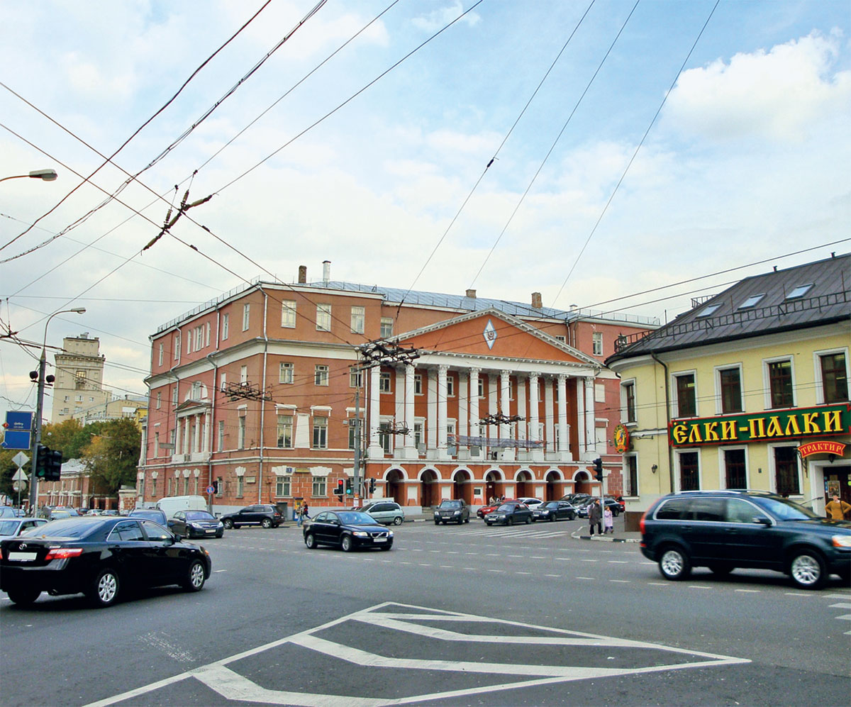 По нашей стороне большой особняк с колоннами. Главное здание на Разгуляе.