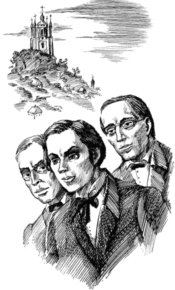 Обважніла зеленню київська весна 1846 року. Внизу – густі дніпровські луги, кручі облиті молоком білого яблуневого цвіту, Андріївська церква потягнулась маківками в блакить і принишкла від бентеги за свою власну красу, мов наречена у шлюбних шатах, а вони втрьох ідуть понад кручами в бік Печерської лаври: юрист, чиновник канцелярії київського губернатора, елегантний, підтягнутий в окулярах – Микола Гулак; довговолосий, кострубатий і костолиций ад'юнкт-професор Київського університету Микола Костомаров і Тарас Шевченко – у довгому сірому сурдуті з оксамитовим коміром, безвусий, з бакенбардами, граційний і веселий.