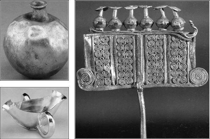 Ця знахідка була справжньою археологічною сенсацією ХІХ століття. Серед речей були дві діадеми з 2271 кільця, 4066 пластинок серцевидної форми та 16 із зображеннями богів – все це було із золота. А ще 24 золотих намистин, сережки, гудзики та голки. Всього скарб містив 8700 золотих виробів, а крім того, масивна золота чаша вагою 601 г, золотий сосуд та велика кількість срібних та електрових (зі сплаву золота зі сріблом) виробів і ще чотири нефритові сокири та крихітні збільшувальні лінзи, призначення яких невідомо.
